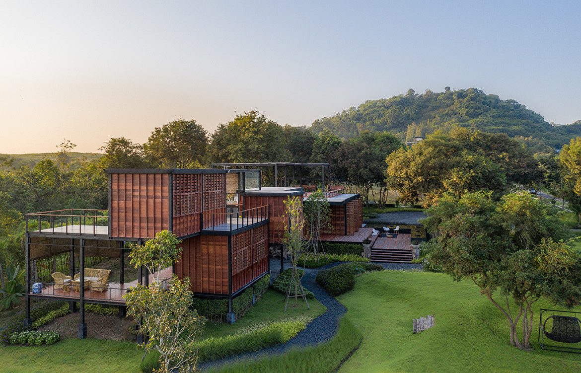An aspect of this was the way in which the architects used the traditional Korat House from Nakhon Ratchasima Province as an inspiration and a guide. The Korat House is a family of spaces within a single storey wooden structure, with a raised platform and light gable roof. It is a pre-fabricated structure using a modular wall system.