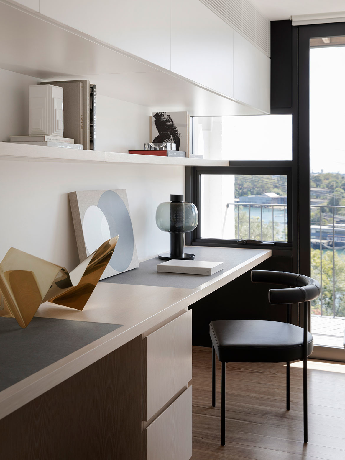 A parents’ retreat spreads out over the first floor, replete with a study nook, Studio Prineas once again proving that not a single square inch need be wasted. “With the limited space, every room had to bring in light and comfort, first by laying down the basics, and then finding freedom within each area,” says Prineas.