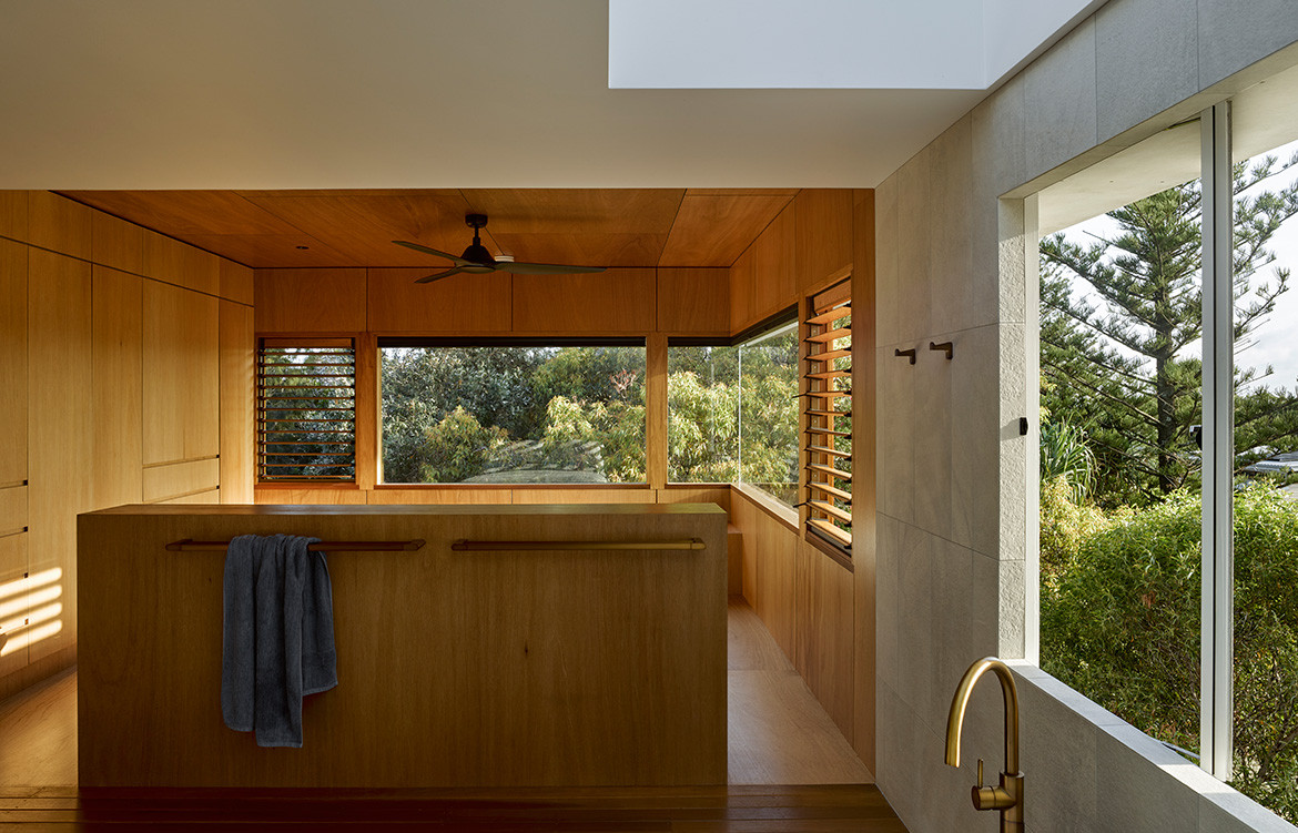 Although there was an existing house on site – a painted blockwork structure that had been added to over the years – it was riddled with asbestos and had issues with dampness and mould, so both client and architect agreed to demolish and start anew. The new Corymbia House takes far greater advantage of its site.