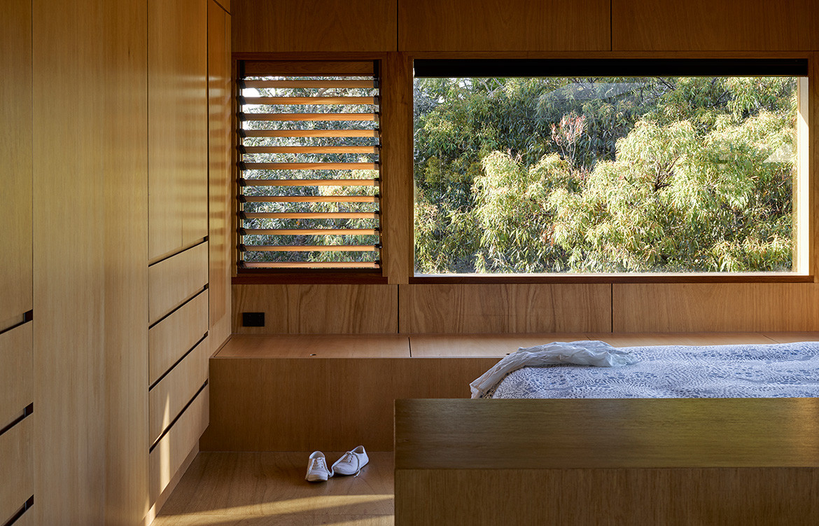 The house is located on a street corner next to council land. The clients’ relatives had planted out this land over time, though the majority was done 35 years ago. Today, it’s quite mature and Paul has incorporated it into the design as a “borrowed landscape” to create the sense of a bush setting.