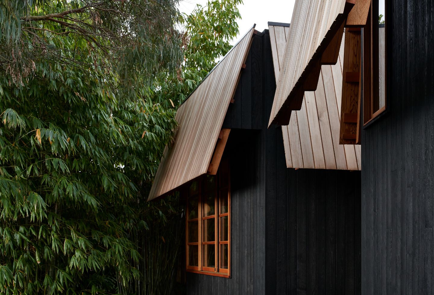 An important decision was to find a source of Shou Sugi Ban in Australia that had the same qualities as the traditional Japanese material. Cedar on the fins creates an important connection to the main house, which is clad in vertical Californian Redwood.