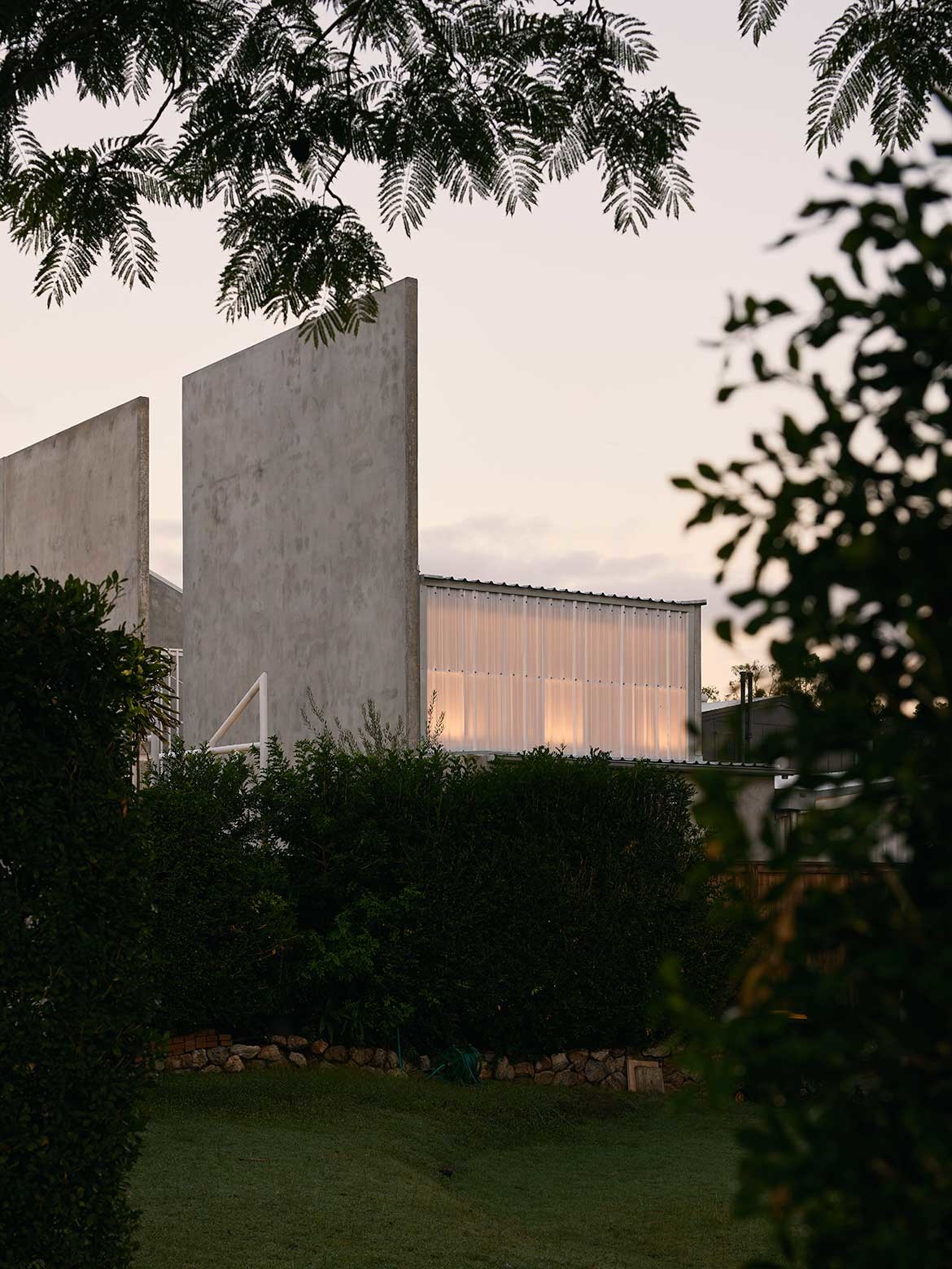 The riverside setting was also key to informing the materiality of the home. Located on a low-lying site that experiences intermittent flooding, the built form needed to be able to withstand the natural elements – hence the concrete shell of the new home.