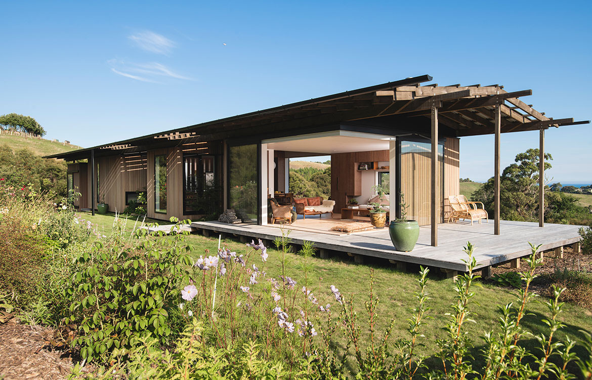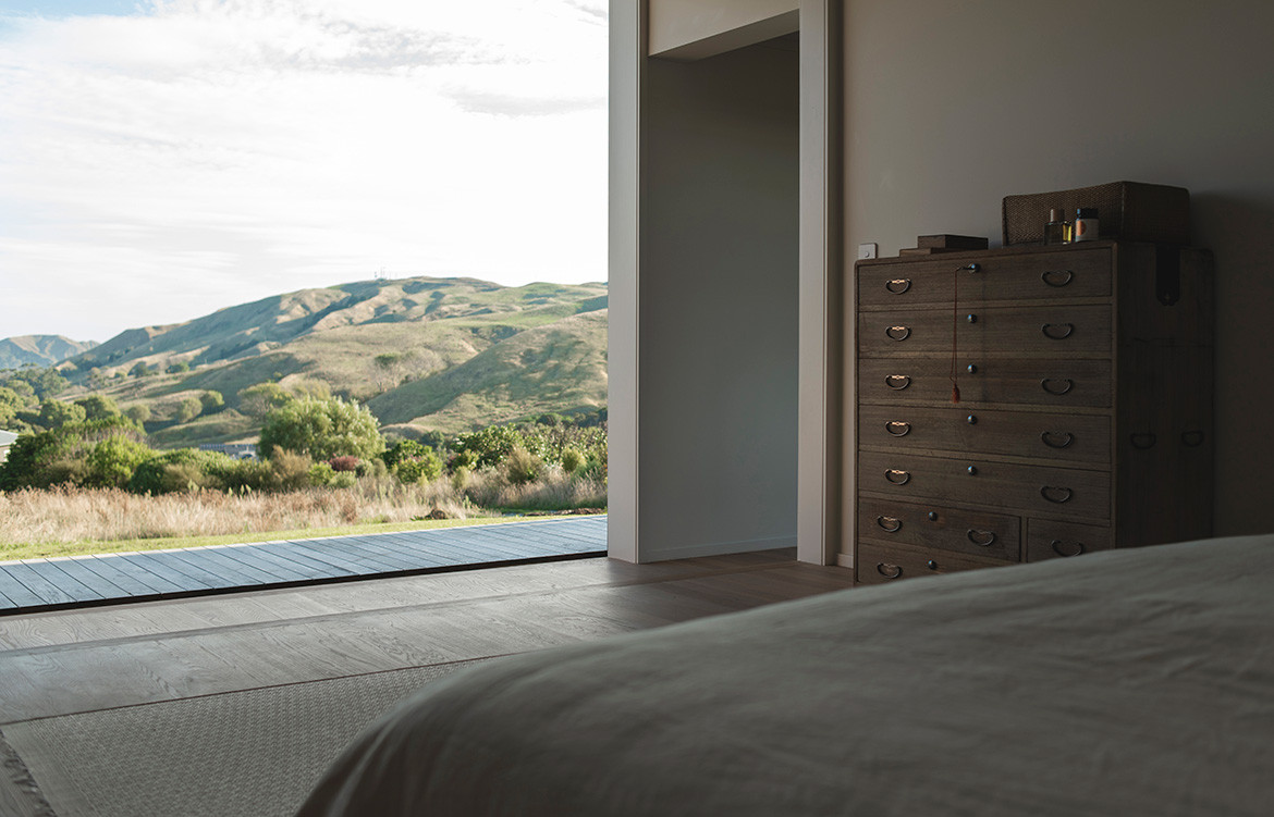 Named after the Maori word for ‘feather’, the Huru House reflects the owners’ desire for a lightweight house both in scale and environmental footprint. Set in the rural foothills above the small east coast city of Gisborne, this is a beautifully subtle building; a family retreat with rural views and glimpses of the Pacific Ocean.