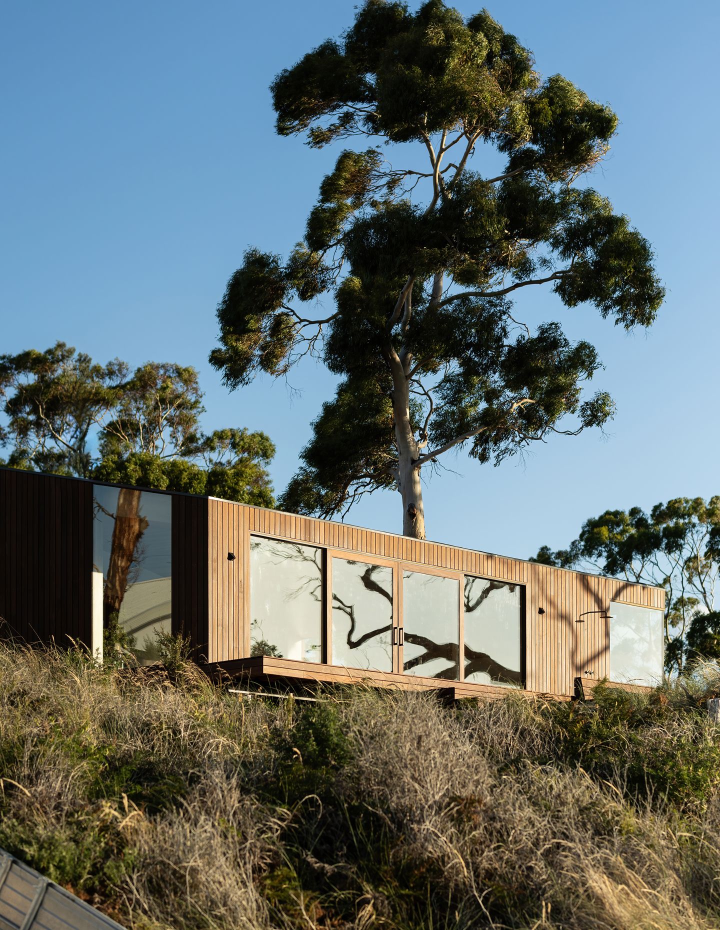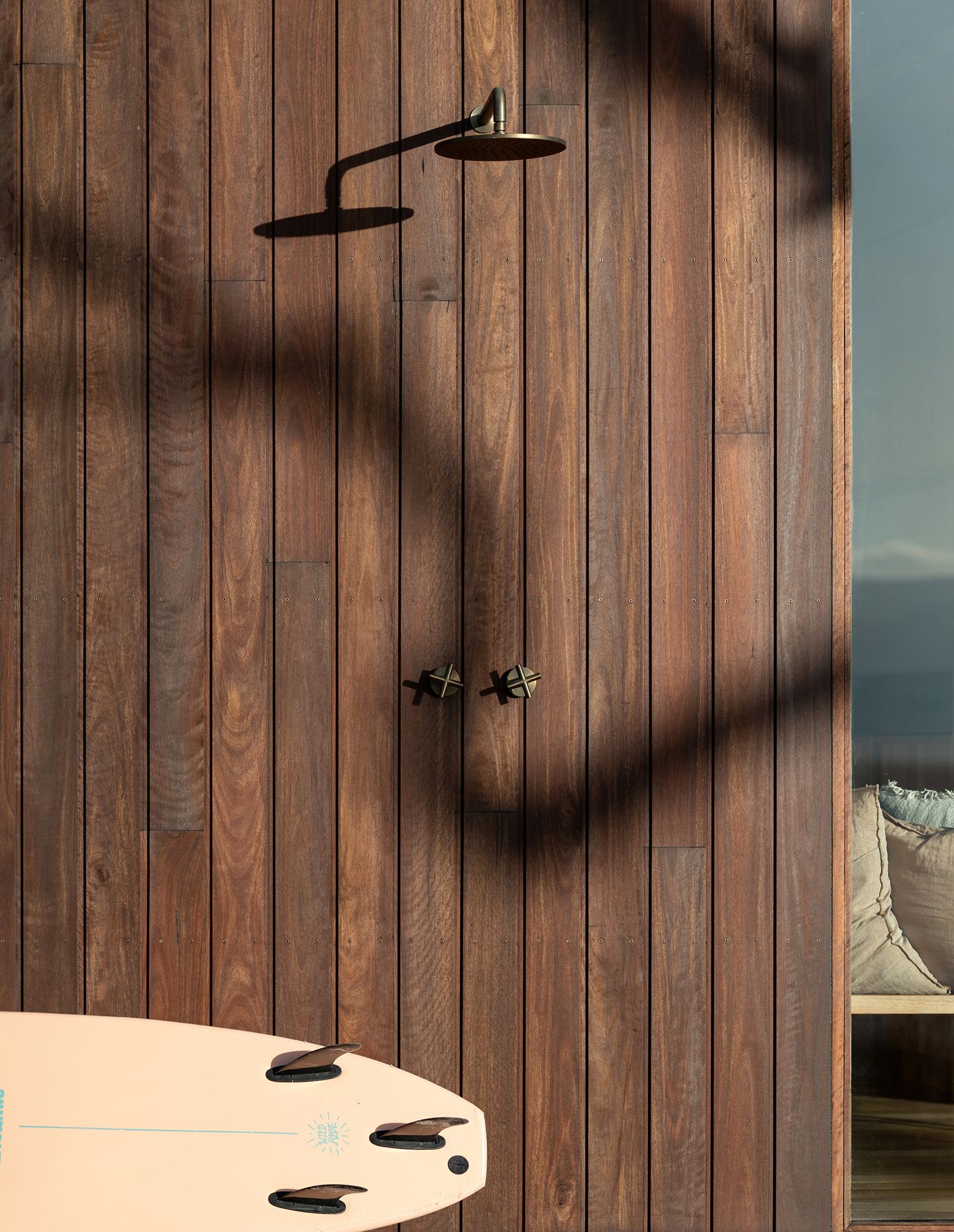 “As a holiday house, it’s about living outside, being able to open everything up, and making the living room accommodate extra people,” says the architect. “The weather can change so quickly, even in summertime, so it’s always good to make sure that you have areas at different times where you can move to.”