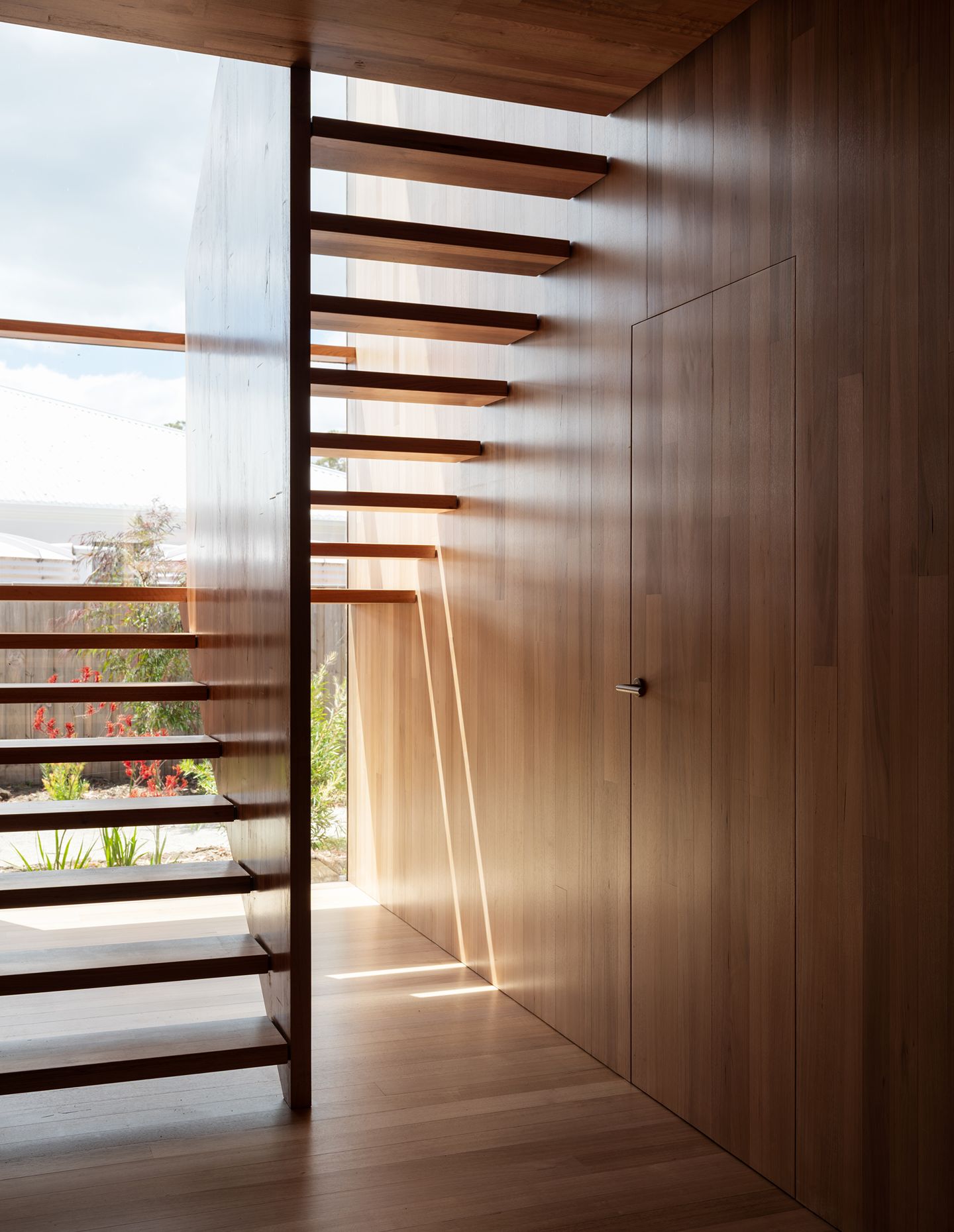 As good friends with children the same age, the clients loved Maeseele’s Killora Bay project around the corner and wanted to have their own version to watch their children play on the beach from within the home. With the incredible vistas in mind, and a desire to capture as much natural light as possible, the design meanders towards the water’s edge.