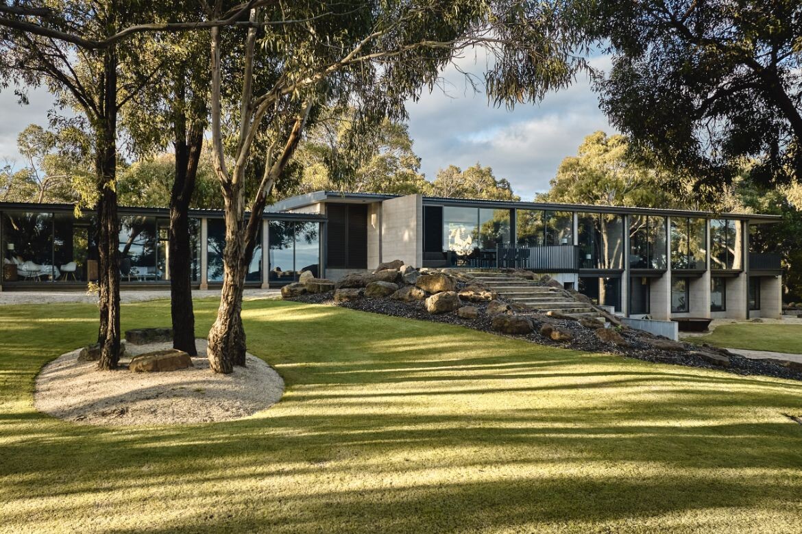 Bedding into the landscape with solidity through the rammed-earth walls, the Aireys House communicates a visual language akin to historic ruins. This construction style not only accentuates the raw aesthetics of the house but also bolsters the impression that the dwelling has organically surfaced from the land.