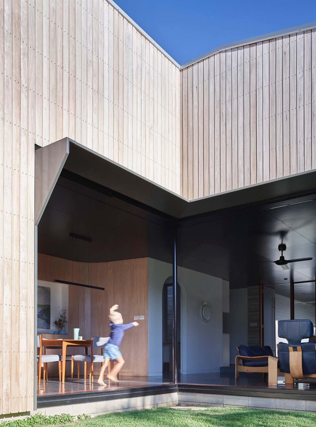 Designed with visibility and flex in mind, the interior spatial planning has the kitchen and dining space centralised on an L shaped plan, with the outdoor and living areas in direct line of sight. “Being able to supervise the kids from the kitchen bench, both when they are indoors and out, was key to the practicality of the planning,” shares Derrick.